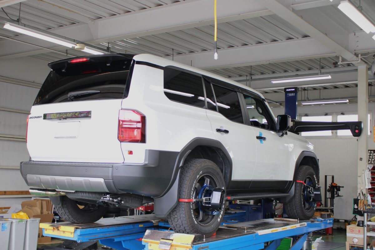 アライメント作業を終え、試走を行いハンドルセンターのズレなどないことを確認したら水平となったランクル250の完成です(≧▽≦)