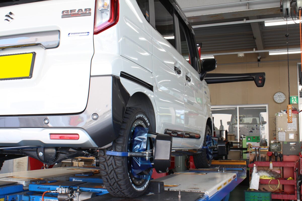 お車のアライメント状態を迅速に数値化、熟練のスタッフが適正な数値へ調整を行います