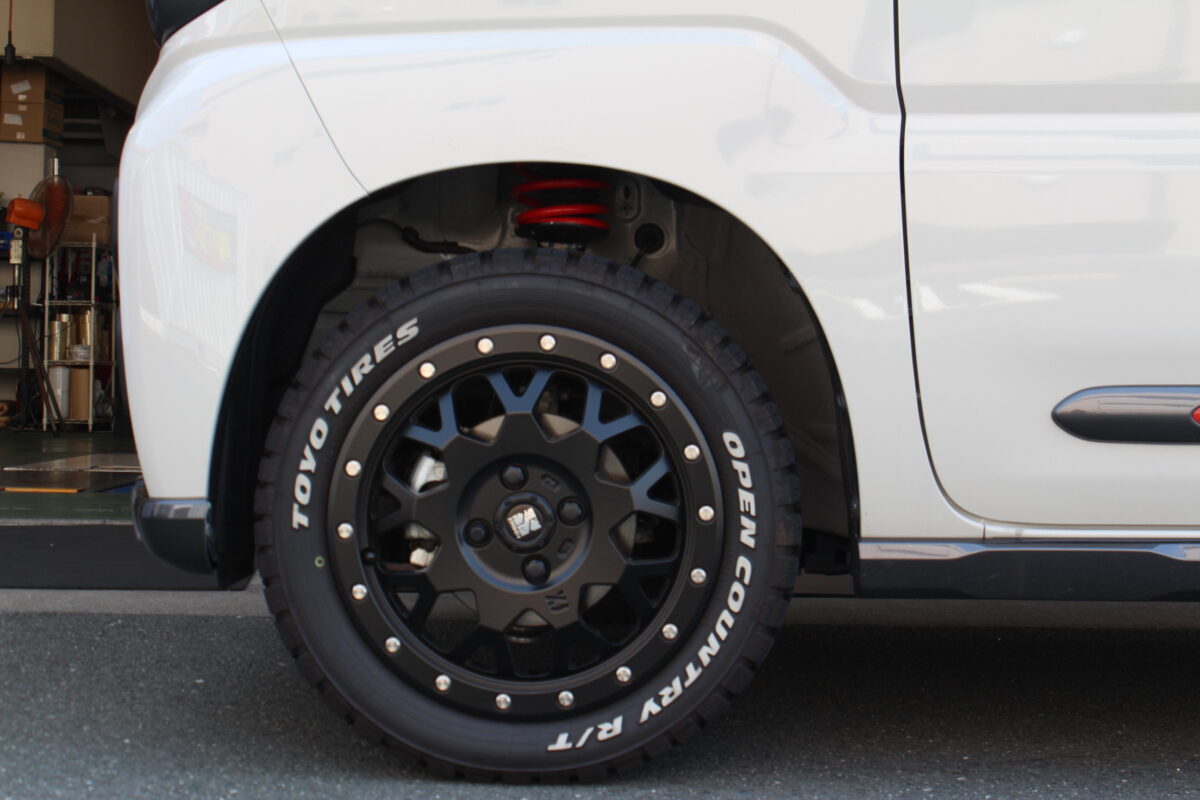 そこから覗く鮮烈な赤いバネもリフトアップカスタムの醍醐味の一つですよ♪