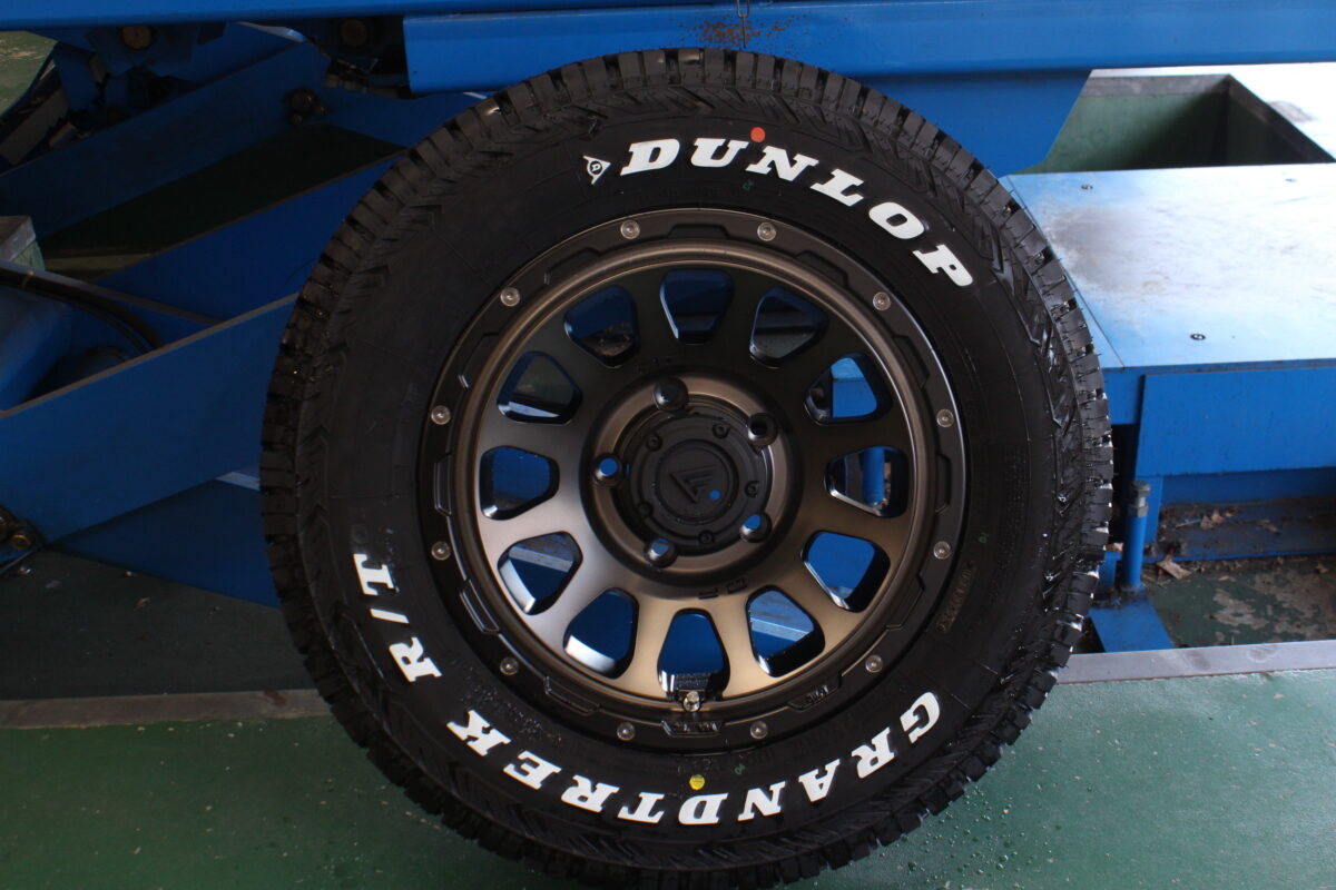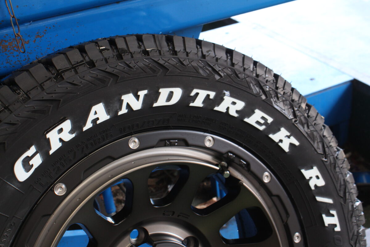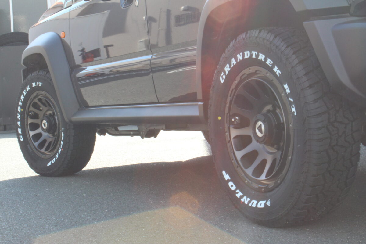 ジムニーカスタムでは外せないホワイトレターが、足元に程よい遊び心をプラスしてくれます