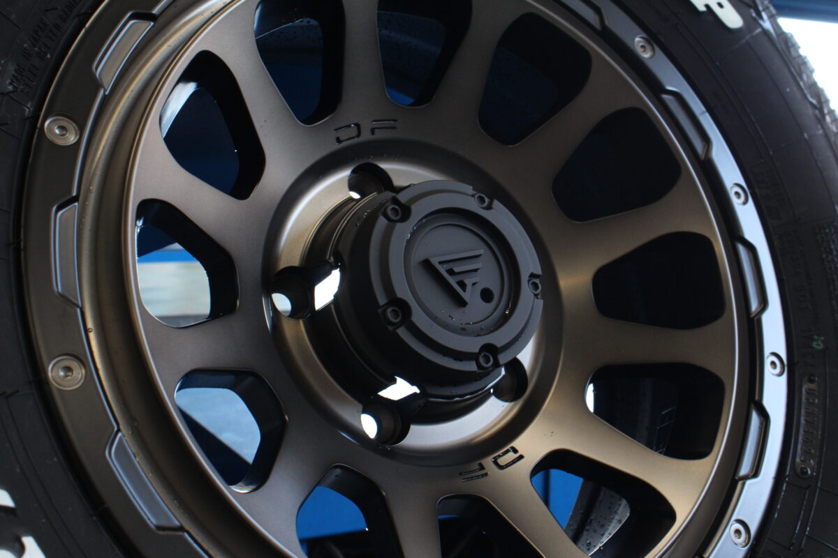 ジムニーシエラにデルタフォースのマットスモークポリッシュを履かせるとこんな仕上がりです。