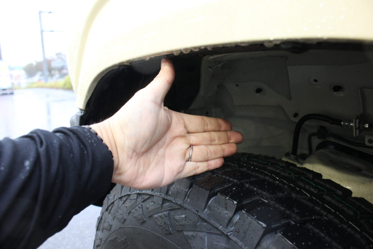 リフトアップを行うことで、タイヤと車両が横方向に位置ズレを起こし、タイヤがフェンダーから突出するなど、様々なデメリットが発生します