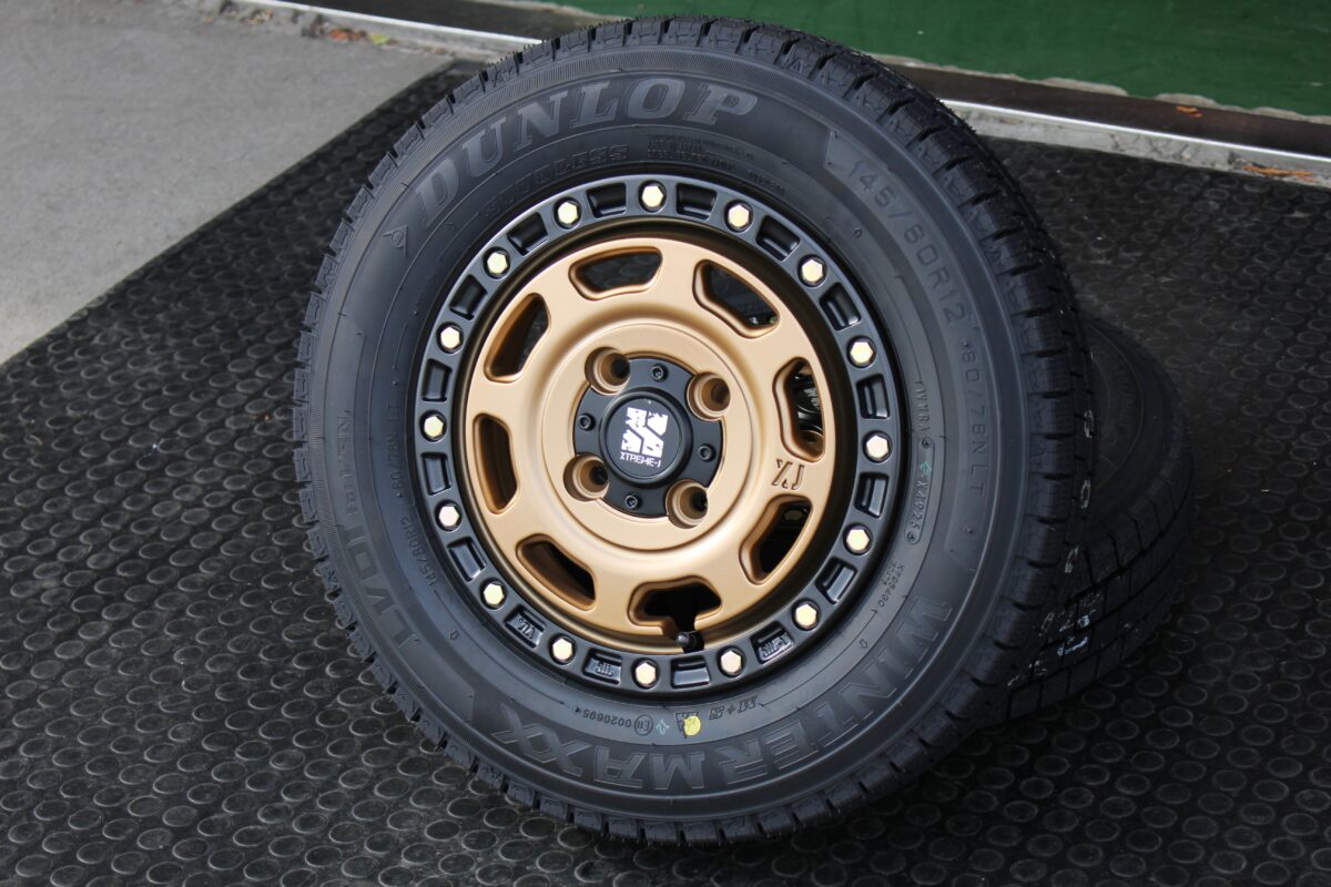 ■【ハイゼット ジャンボ】冬こそ攻める!MLJ エクストリーム-J XJ07 で魅せる軽トラ冬カスタム! 「冬はスタッドレスだから、純正のホイールで我慢…」 そんなの勿体ない! 冬のシーズンを最高にカッコよく過ごすための「ウィンターカスタム」あります! 皆様こんにちは!アーバンオフクラフト鈴鹿店の森です! 本日は、仕事に遊びに大活躍の「ダイハツ ハイゼット ジャンボ」のご紹介です。 ■MLJ XTREME-J XJ07 お選びいただいたホイールは、オフロード好きから絶大な支持を得る「MLJ エクストリームJ XJ07」。 レンコン系デザインを現代風にアレンジしたXJ07。 ハイゼット ジャンボのキャビンボリュームに負けない、力強い足元を演出してくれます。 カラーは「マットブロンズ/ブラックリム」 黒のボディカラーに、このマットブロンズが最高に映えるんです! 派手すぎず、しかし確かな存在感を放つブロンズと、リムのブラックが足元をグッと引き締めてくれます。 ■DUNLOP WINTER MAXX LV01V 組み合わせるタイヤは、ダンロップの商用車用スタッドレス「ウィンターマックスLV01V」。 冬の厳しい路面状況でもしっかり止まり、しっかり曲がる。 「LV01V」は、軽トラ特有の荷重にもしっかり耐え、ロングライフ性能も兼ね備えた頼れる相棒です。 このゴツめのホイールに、スタッドレスの深い溝が加わることで、冬限定の「スノーオフロードスタイル」が完成します! 【SIDE/BEFORE】 【SIDE/AFTER】 【BEFORE】 【AFTER】 ■WHEEL MLJ エクストリームJ XJ07 4.0J-12インチ 4/100 ■COLOR マットブロンズ/リムブラック ■TIRE ダンロップ ウィンターマックス LV01V ■SIZE 145/80R12 80/78   漆黒のボディに、ブロンズの鈍い輝き…。 これ、めちゃくちゃ渋くないですか!? 「スタッドレス=純正サイズで地味」という常識を覆す、オーナー様のセンスが光る一台です。 冬の雪道でも、スキー場やキャンプ場でも、間違いなく視線を独占してしまう仕上がりになりました。 「冬の間も愛車をカッコよく保ちたい!」「軽トラでもオシャレにこだわりたい!」 そんなオーナー様の熱い想い、アーバンオフクラフト鈴鹿店がカタチにします。 スタッドレスタイヤのセットも、ホイールのデザインにこだわるだけで冬のドライブが何倍も楽しくなりますよ! 皆様のご相談をお待ちしております! アーバンオフクラフト鈴鹿店でした! 【開催中のイベント】 【次回開催予定イベント】 管理番号:0222601151003