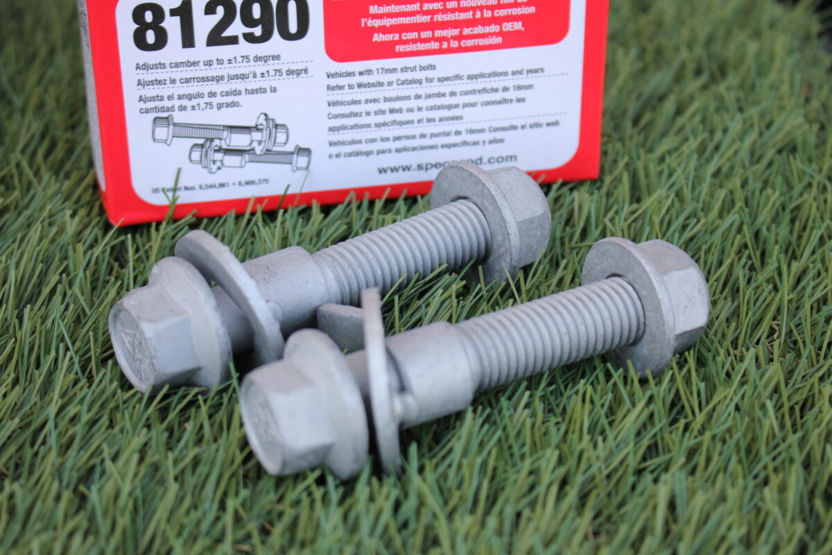 リフトアップによりキャンバーが基準値外になってしまうので、それを補正するための偏心ボルトです。