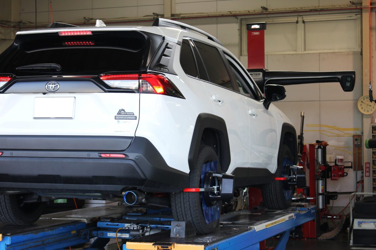 そして仕上げは、車高変化によって変化してしまったタイヤの向きを整える「3Dアライメント調整」。