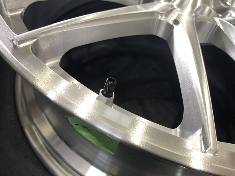 純正ホイールから取り外ししたTPMSをこのように移植。