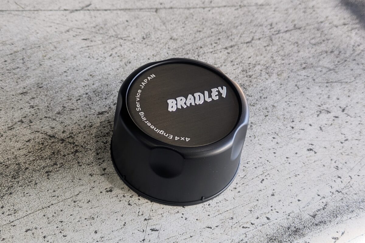 SUV専用スタッドレスの力強いトレッドパターンとブラッドレーVの無骨さが相まって、どんな悪路でも突き進める安心感を纏いました。