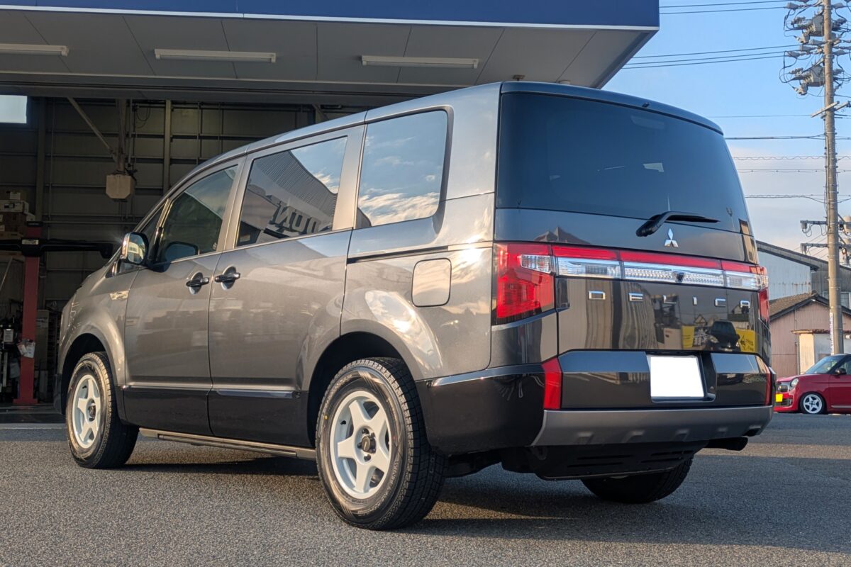 16インチへのインチダウンとホワイトのカラーリングがデリカD:5の四駆らしさを120%引き出しています♪