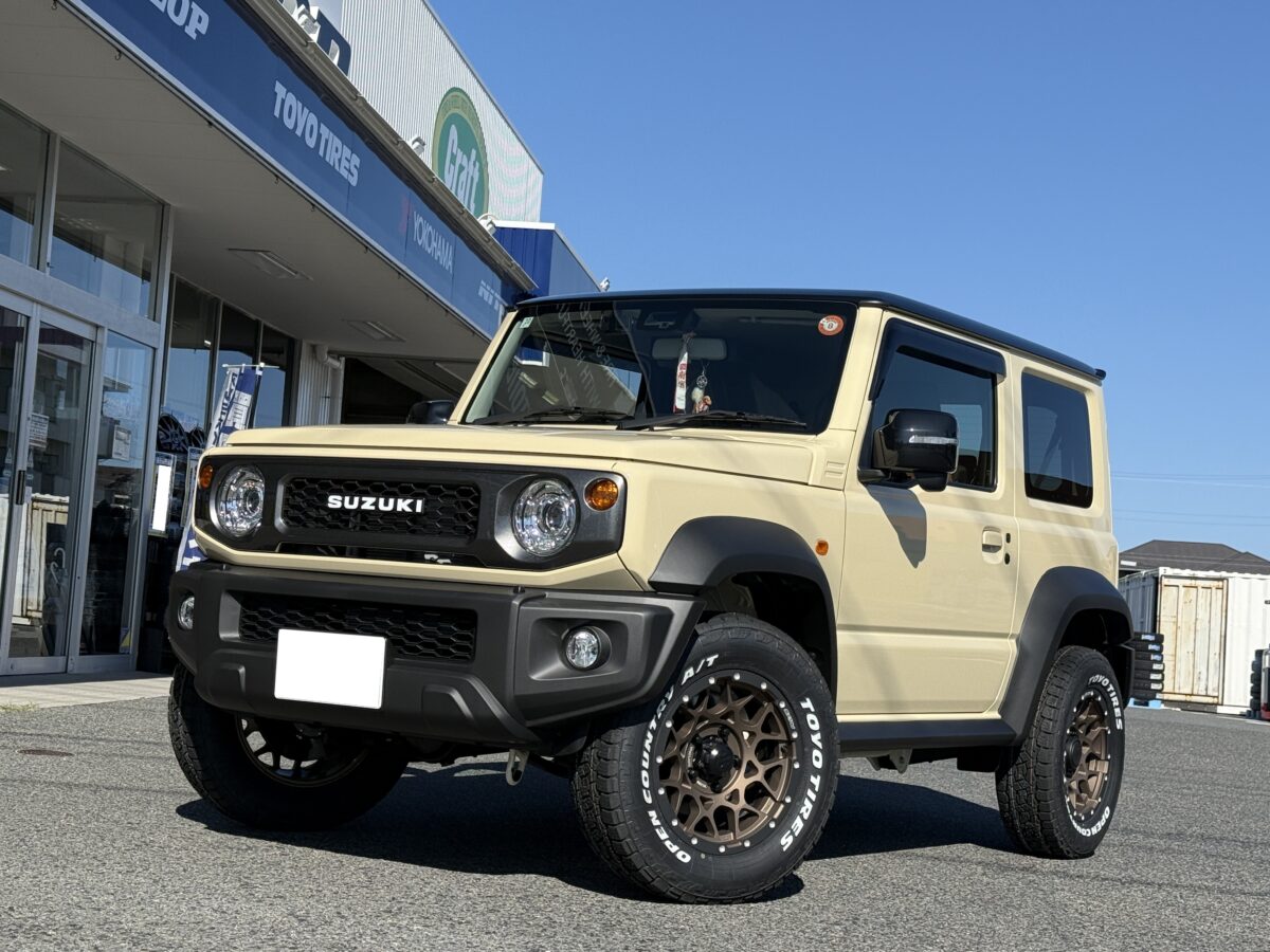 クラフト四日市店の本日のご紹介となる車両は、四日市店でもご来店が絶えない「ジムニーシエラ(JB74)」で、やはり多いお問い合わせやカスタムは足元の変更。