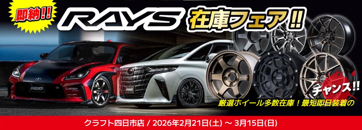クラフト四日市店では2026年2月21日(土)〜3月15日(日)まで「RAYS即納!在庫フェア!」を開催。