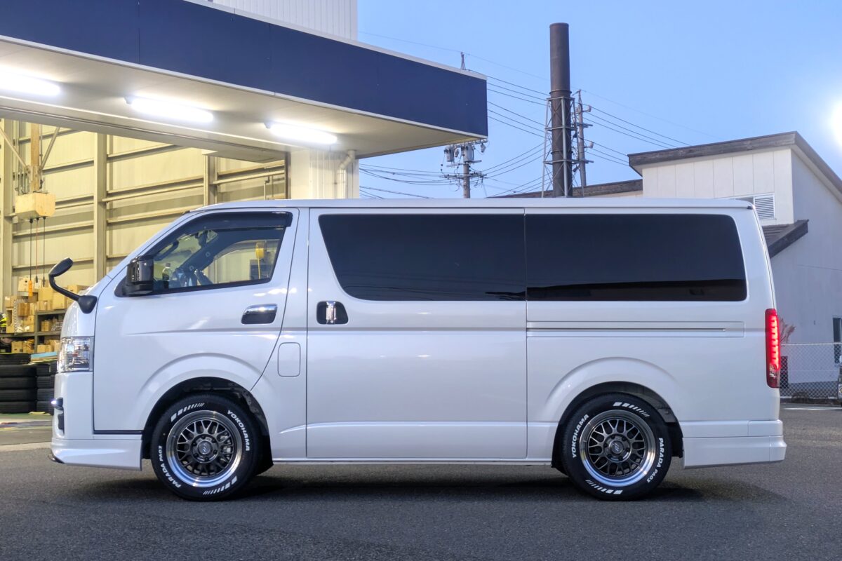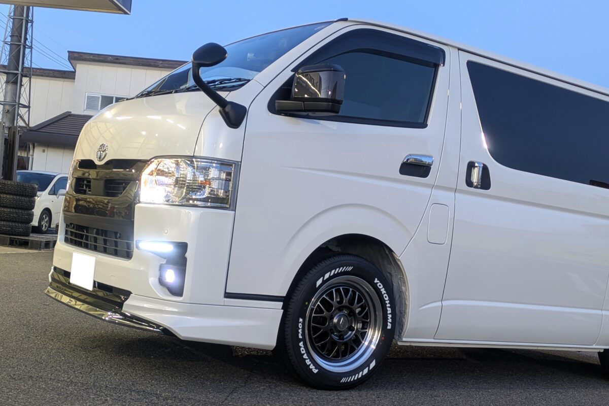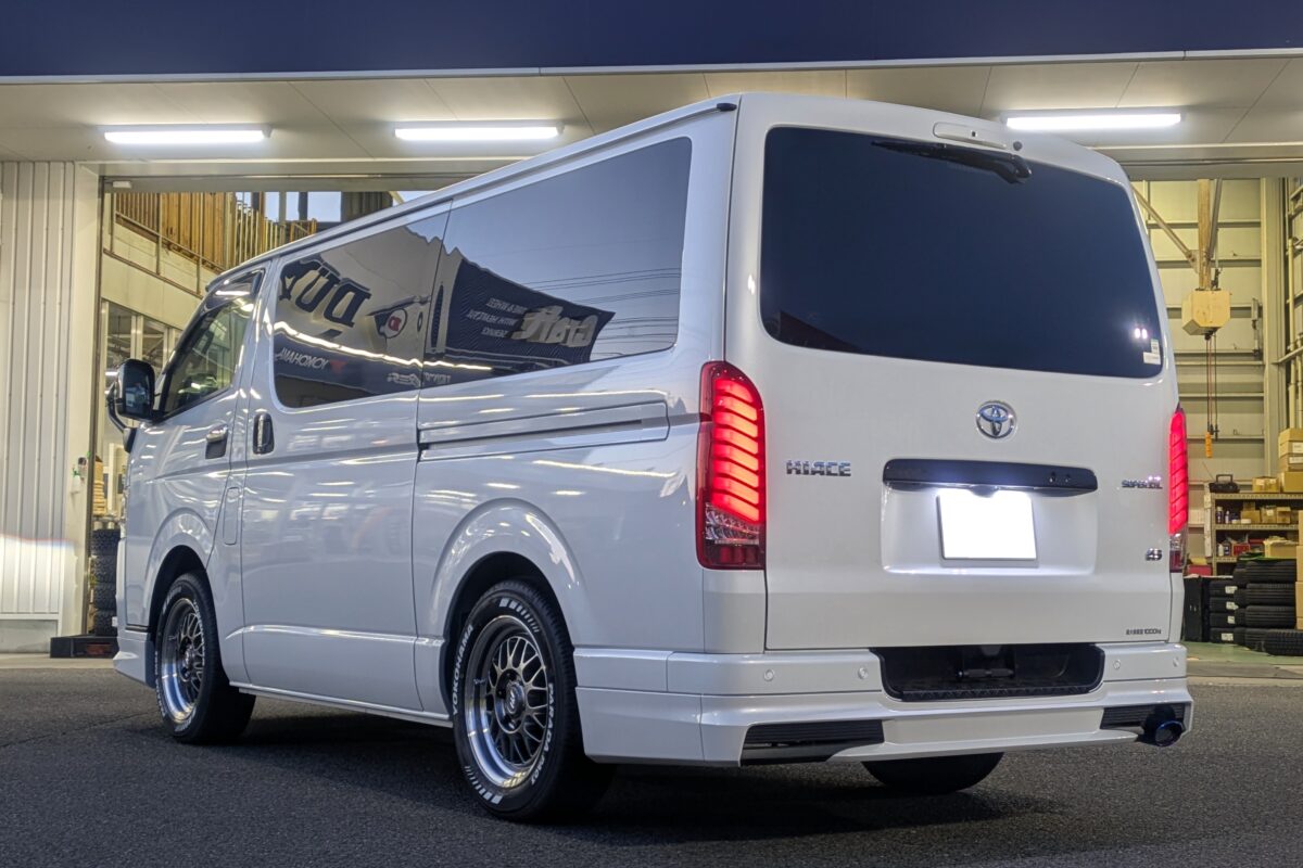 本日のカスタムブログは不動の人気を誇るトヨタ・ハイエースのタイヤ&ホイール交換をご紹介します。