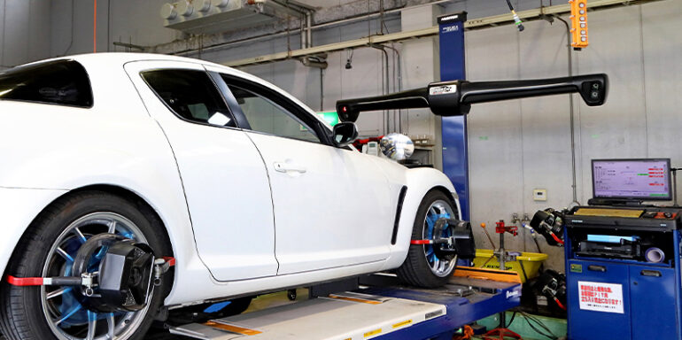 クラフトでは【3Dアライメントテスター】を設置しています。 新品タイヤに交換した際、同時にアライメント調整を実施することで、より正確な調整が行なえます。 |